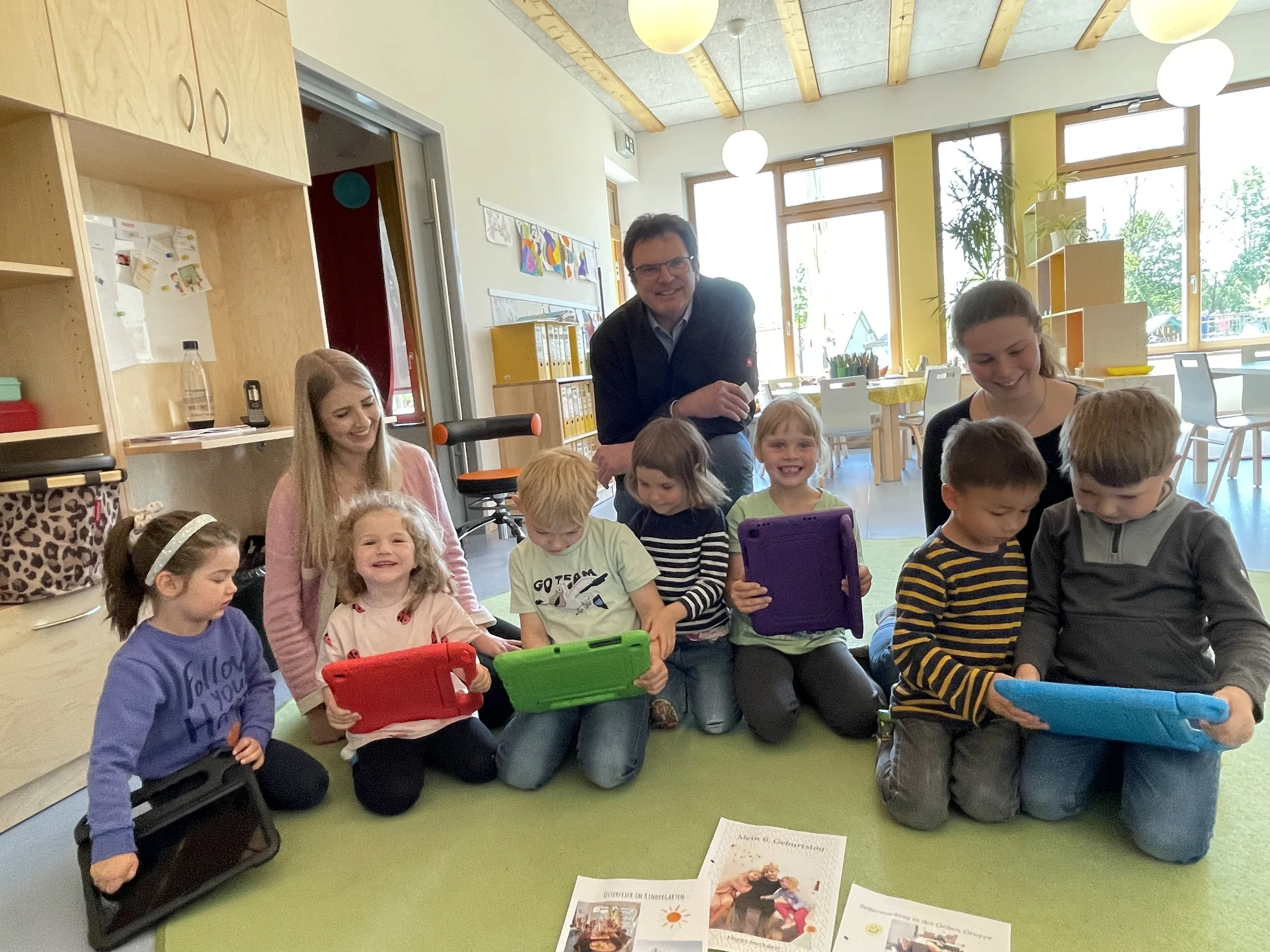 Dank der großzügigen Spende der Koller Stiftung im vergangenen Jahr konnten einige Zusatzangebote finanziert werden, erklärt Laura Simon, die Leiterin des Kinderhauses. Dazu gehören fünf Tablets für die Erstellung von Collagen und Erinnerungsblättern, Yogamatten für Yogastunden, Traumreisen und Achtsamkeitstraining.